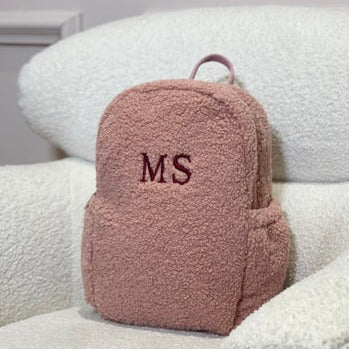 Personalised Teddy Boucle Backpack in Dusty Rose