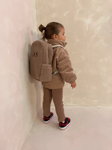 The personalised Boucle Teddy Backpack is the perfect accessory for all your little ones adventures. Designed in super soft boucle fabric and lined in satin. The backpack features a zip up compartment inside, adjustable straps and lots of room for your child's belongings - perfect for nursery days, a night away or a day trip.